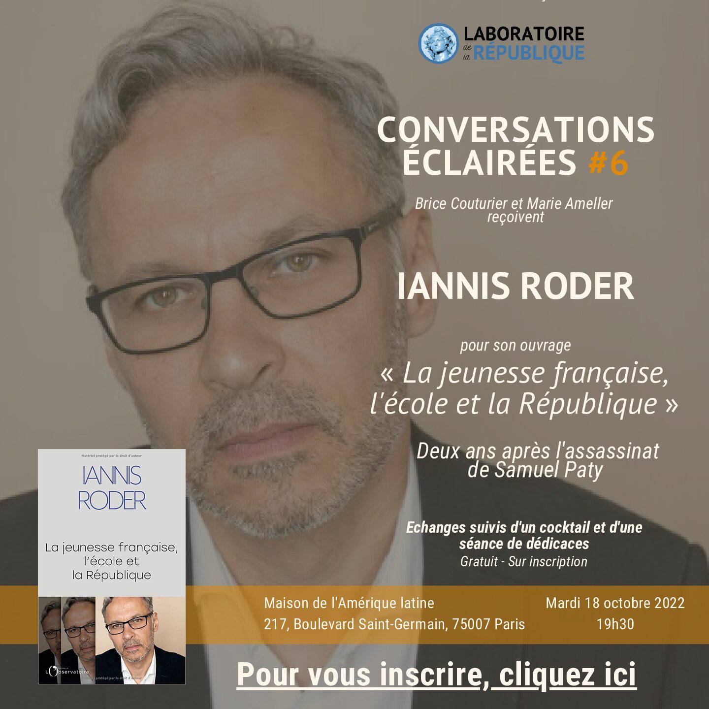 Le mardi 18 octobre 2022, Iannis Roder sera l'invité des "Conversations éclairées". Nous évoquerons son ouvrage "La jeunesse française, l'école et la République" publié aux Éditions de l'Observatoire, deux ans après l'assassinat de Samuel Paty.