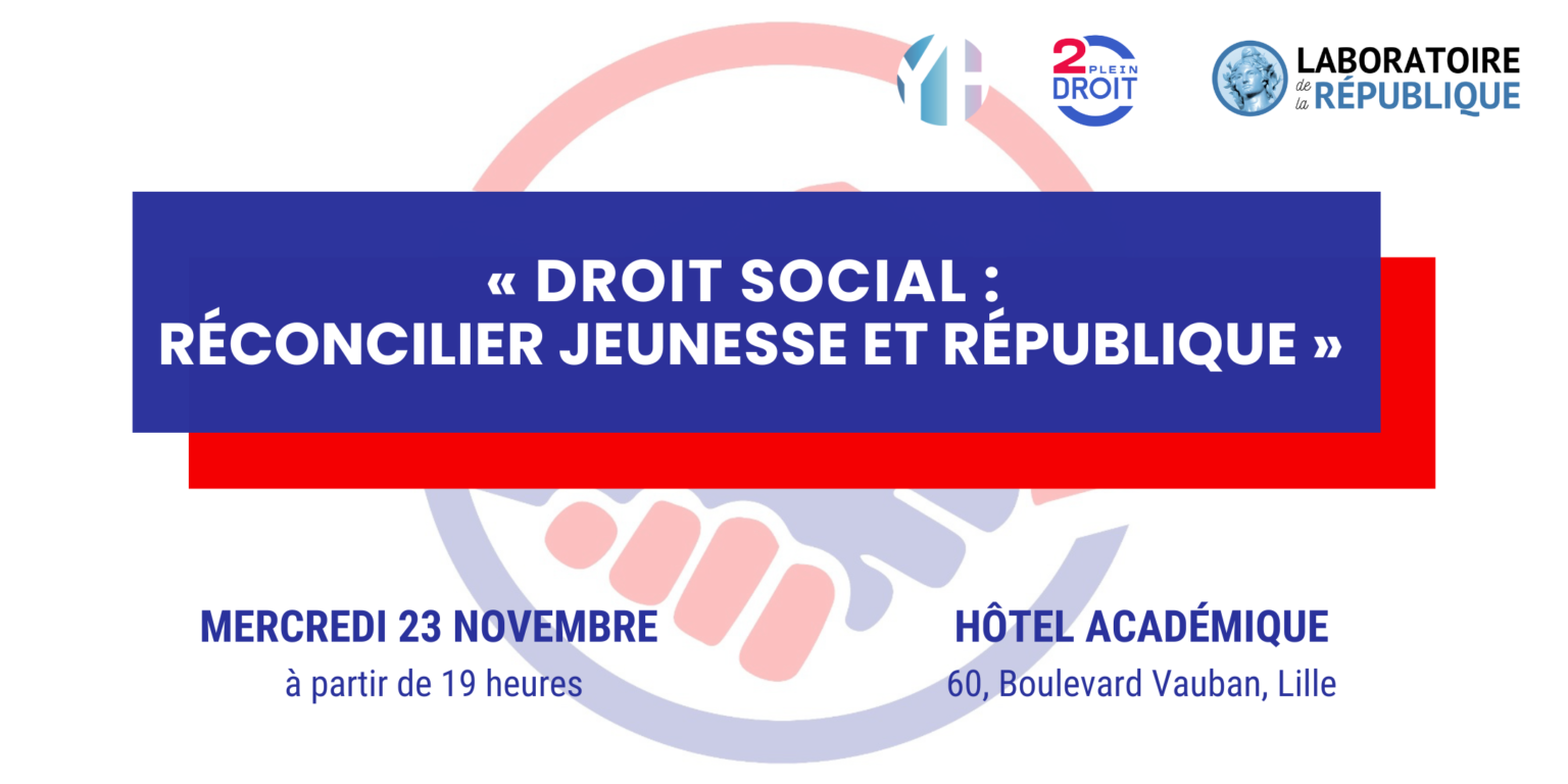 Le Laboratoire de la République vous donne rendez-vous à Lille le 23 novembre prochain pour le lancement de la première antenne locale lors d'une conférence : "Droit social : réconcilier jeunesse et République". La République